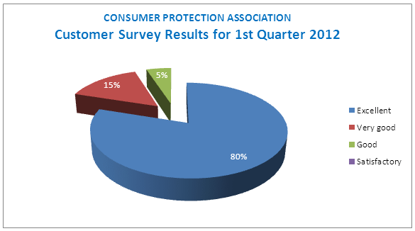 We are delighted that feedback from the Consumer Protection surveys is as good as ever. Our results for the year 2012 are as follows: |